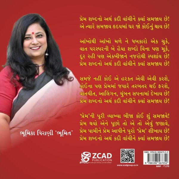 સહજ શબ્દોમાં પ્રેમ નું વર્ણન કર્યું છે સાચું કહું તો પ્રેમનો શણગાર જ કર્યો છે. પ્રેમ માટે તો લખાય એટલું ઓછું જ લાગે છે પણ ભૂમિકાજી એ ખૂબ જ ઓછા શબ્દમાં પણ ખુબ સરસ પ્રસ્તુતિ કરી છે. પુસ્તક આવ્યું અને એક જ દિવસમાં હું વાંચીને પૂરું કર્યું ખૂબ આનંદ થયો કે આ પુસ્તક મને વાંચવા મળ્યું.